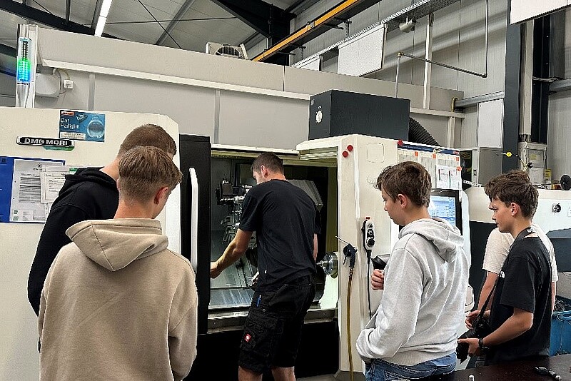 Die Schülerinnen und Schüler hatten die Möglichkeit, hautnah zu erleben, wie Roboter und Zuführmaschinen nahtlos zusammenarbeiten, um komplexe Aufgaben zu bewältigen. Besonders faszinierend war die Demonstration, wie durch den Einsatz von Sensorik und Steuerungstechnik die Maschinen in der Lage sind, sich an unterschiedliche Produktionsanforderungen anzupassen und dabei höchste Qualität zu gewährleisten.